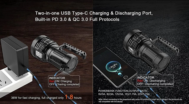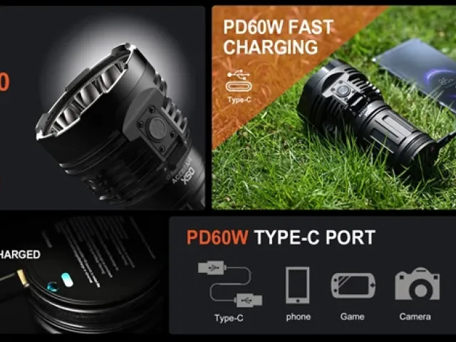The X50 2.0 world's first PD power bank brightest flashlight powered by 3 x 21700 battery pack