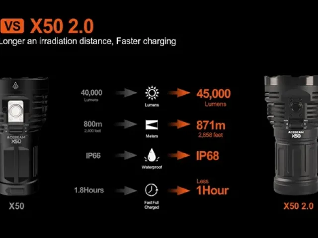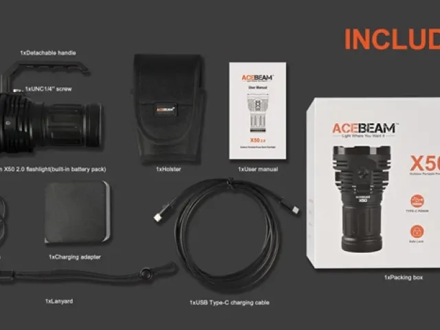 Additionally, the flashlight has a rechargeable battery that can be charged using the included USB-C cable. Overall, the Acebeam X50 2.0 6500k flashlight is an excellent choice for anyone who needs a bright, durable flashlight for outdoor activities.