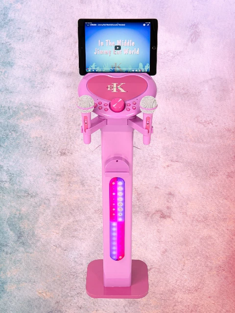 The Easy Karaoke EKS997BT Bluetooth singing system is the perfect option for children of a younger age. Designed with their needs in mind, it features a built-in speaker, dazzling LED lights, and two compact microphones.