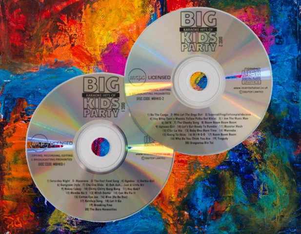 Other songs featured in the CDG are "Cha Cha Slide" by DJ Casper, "Hokey Cokey" by Black Lace, and "Cotton Eye Joe" by Rednex, among many others. This diverse selection of party hits guarantees every little one a great time while singing along to their favourite tracks.