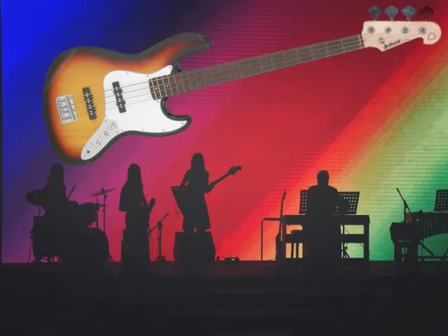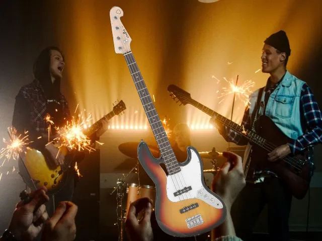 Introducing the Chord CAB42 Electric Bass Guitar, a classic beauty with exceptional versatility, in a glorious 3-tone sunburst finish.