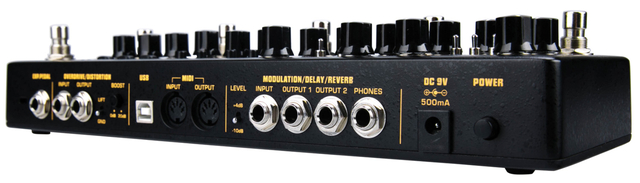 In live mode, you have the flexibility to switch effect blocks on or off as needed. In preset mode, you can access four stored patches per bank using footswitches. Cerberus offers comprehensive inputs and outputs, making it compatible with professional setups, including expression pedal inputs, 4-cable method wiring, and MIDI control.