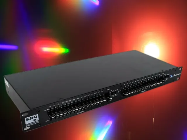 This, is the amazing ]Studiomaster SRQ30, compact 19" 1U graphic equaliser that packs a punch. As part of the SRQ range, this unit offers the quality and features that sound engineers demand. With a compact one rack space design, the SRQ30 is a 2 x 15 band graphic equalizer with frequencies spaced at 2/3 octaves, making it ideal for precision audio control.